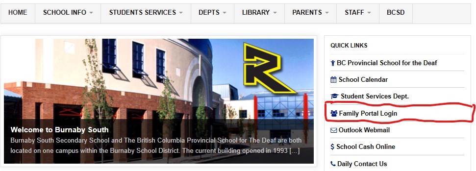 • Open the school website and click the MyEducation BC link on the top menu or navigate to