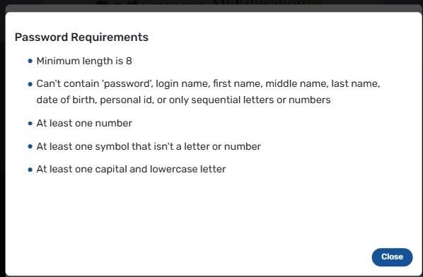 Note: Internet Explorer is the recommended browser, as it gives you the Password Eye icon to the right of  the password field. When clicked you can view the password you have entered and to make sure that it has been entered correctly.